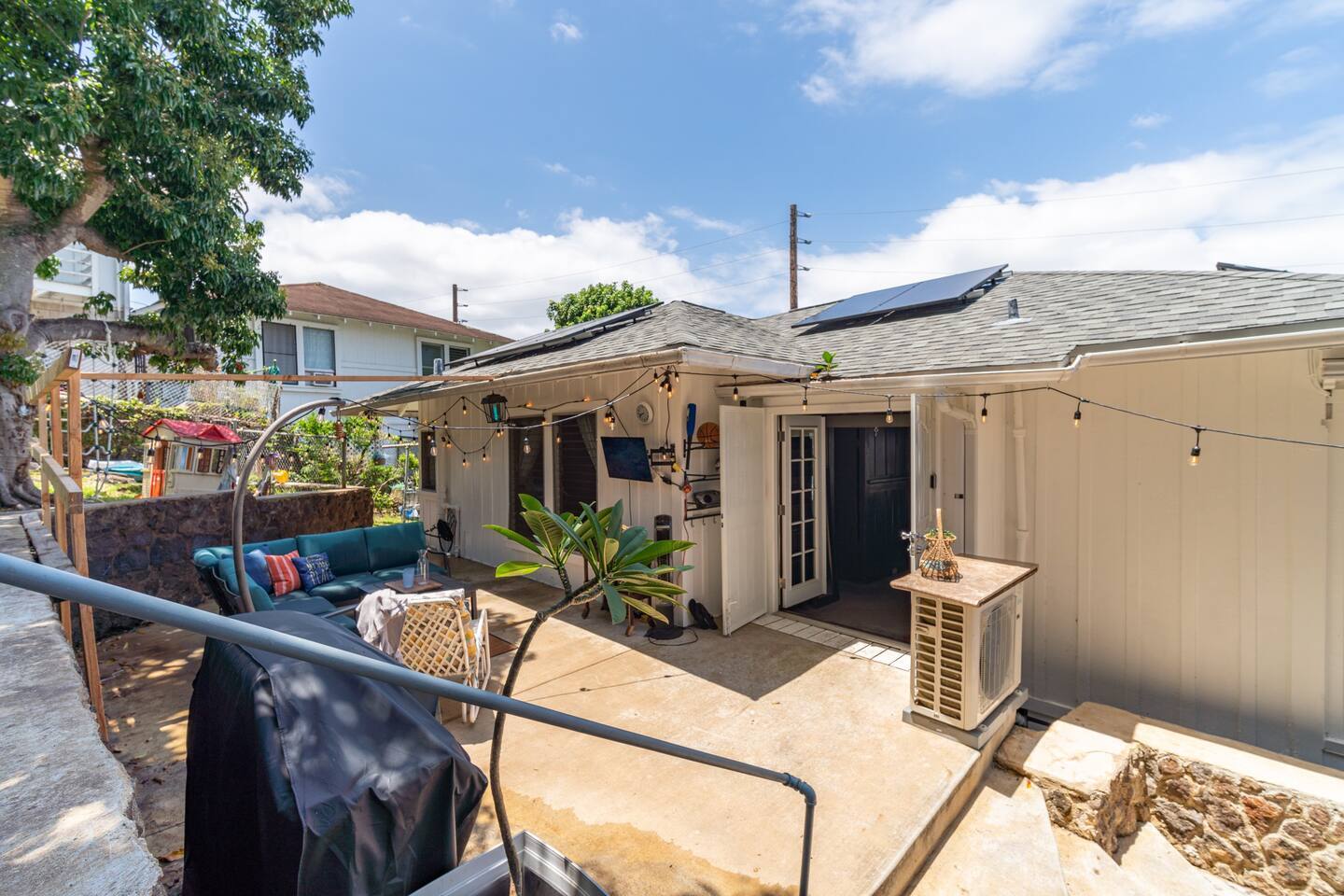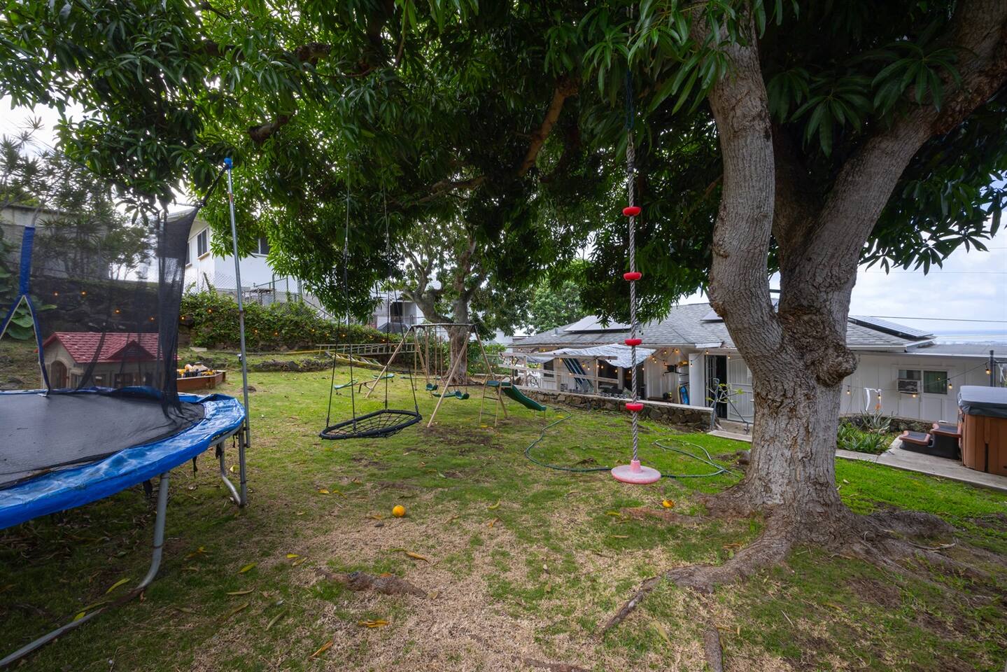 Welcome to this family/group home in the heart of Honolulu. Its location makes it easy to work and play in Honolulu. You are only minutes away from Waikiki, downtown, Airport, Most major hospitals, etc. A beautiful 20-30 min drive to the Windward side takes you to the famous Lanikai beach. While the home is equipped to host 8 people, we think the perfect group size is 4-6. We will be happy to host all 8 but keep in mind it will be a little cozier. We have a blowup toddler bed that can hold 300 lbs, a playpen, and an extra large tent that can be set up in the backyard for fun. The backyard is equipped with everything you need for family fun. There is a jacuzzi, gas grill, outdoor living room set, café lights, trampoline, swings, and swing set. We have a huge Lychee and Mango tree that fruit in the summer. Sure eating at the finest restaurants can be fun. But sometimes we all need a nice home-cooked meal, right? That's why our kitchen is stocked with all the essentials you'll need to cook you and your family a nice dinner. The property has a very separate studio on the garage level of the home that we also Airbnb. We hosted many guests in that studio while living in the main home and hardly ever saw or heard any of our guests. The on-site parking will dedicated to the main house guests only. While I won't be available in person, I am just a short phone call or text away. Location: Alewa Heights area which is up the hill from Nuuanu and Kalihi areas People can Drive, Use Lyft or Uber or Use “The Bus” (bus stops within walking distance from the house) The laundry room is on the exterior of the home and we allow studio guests to use it sparingly when it is ok with you. We suggest allowing one designated day a week for the studio guest as needed. But it is up to you. We love our great neighbors and so we ask that you do not do anything that would bother them in any way. If you must smoke, I have had guests take walks around the lovely neighborhood to smoke and that is fine. Smoking just outside the front of the house may not be as good of an idea. Mahalo! Although the home is in a residential area and has a studio as part of the house it's quite private. I have hardly ever heard any sounds from around the area while relaxing in the space. Property may not be rented for less than 30 consecutive days. ***** This property may not be rented for less than [30] consecutive days. Rental prices will not be reduced or adjusted based on the number of days the rental is actually used or occupied ***** Note: This cost is for the rent of the property and after you proceed to book you will see property taxes/cleaning fees to be included. A pet deposit may apply. Honolulu taxes: 4.71% Lodging tax 10.25% Transient occupancy tax (less than 180 days stays)